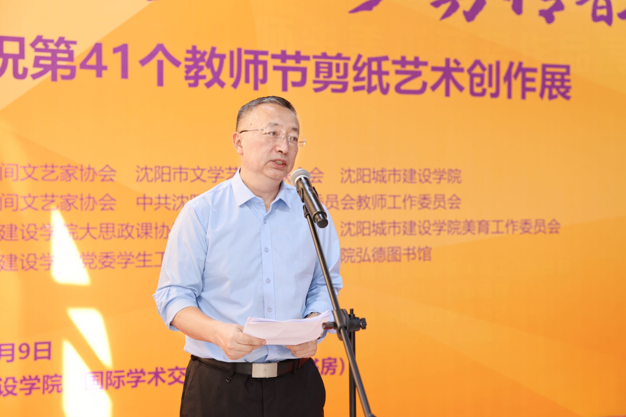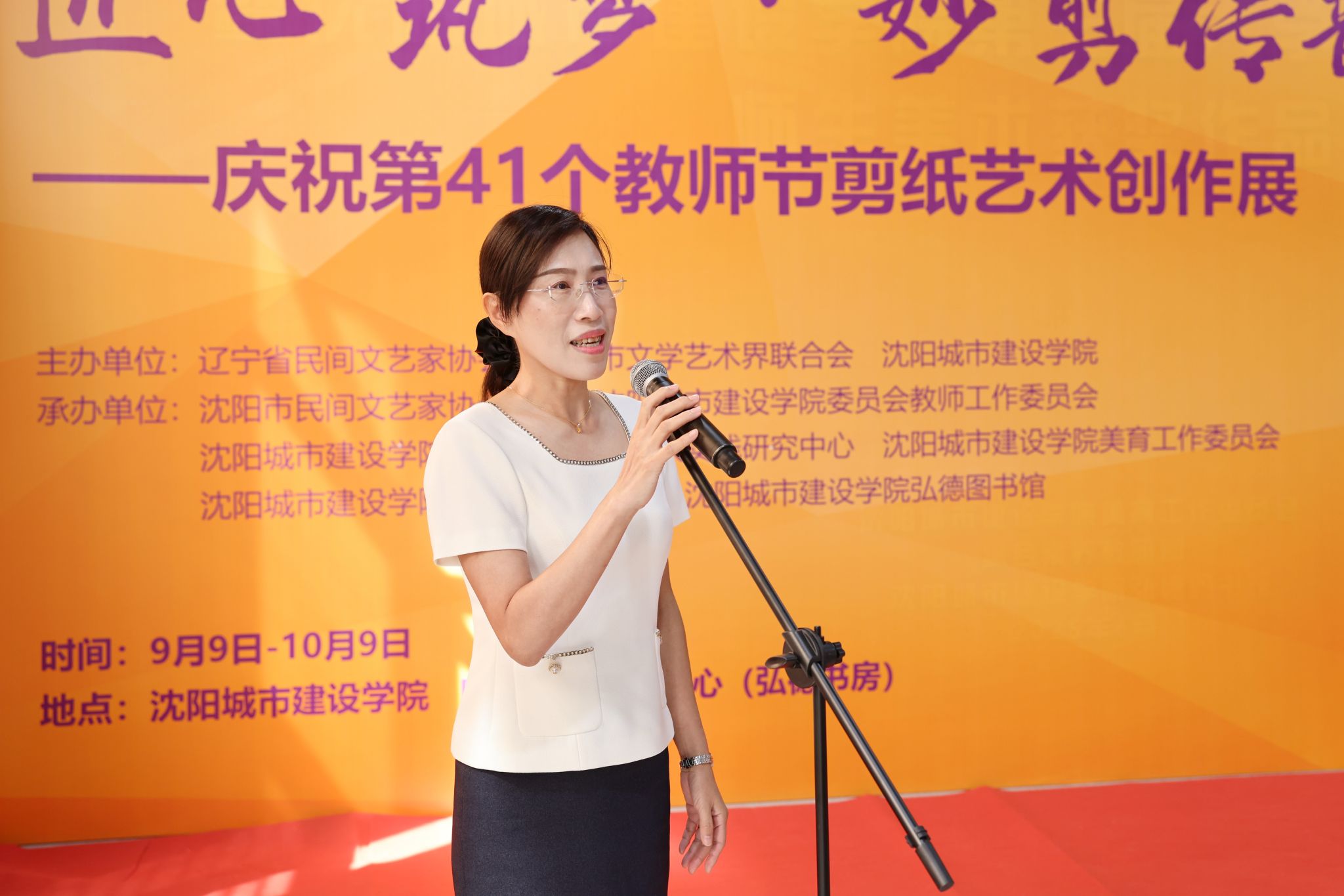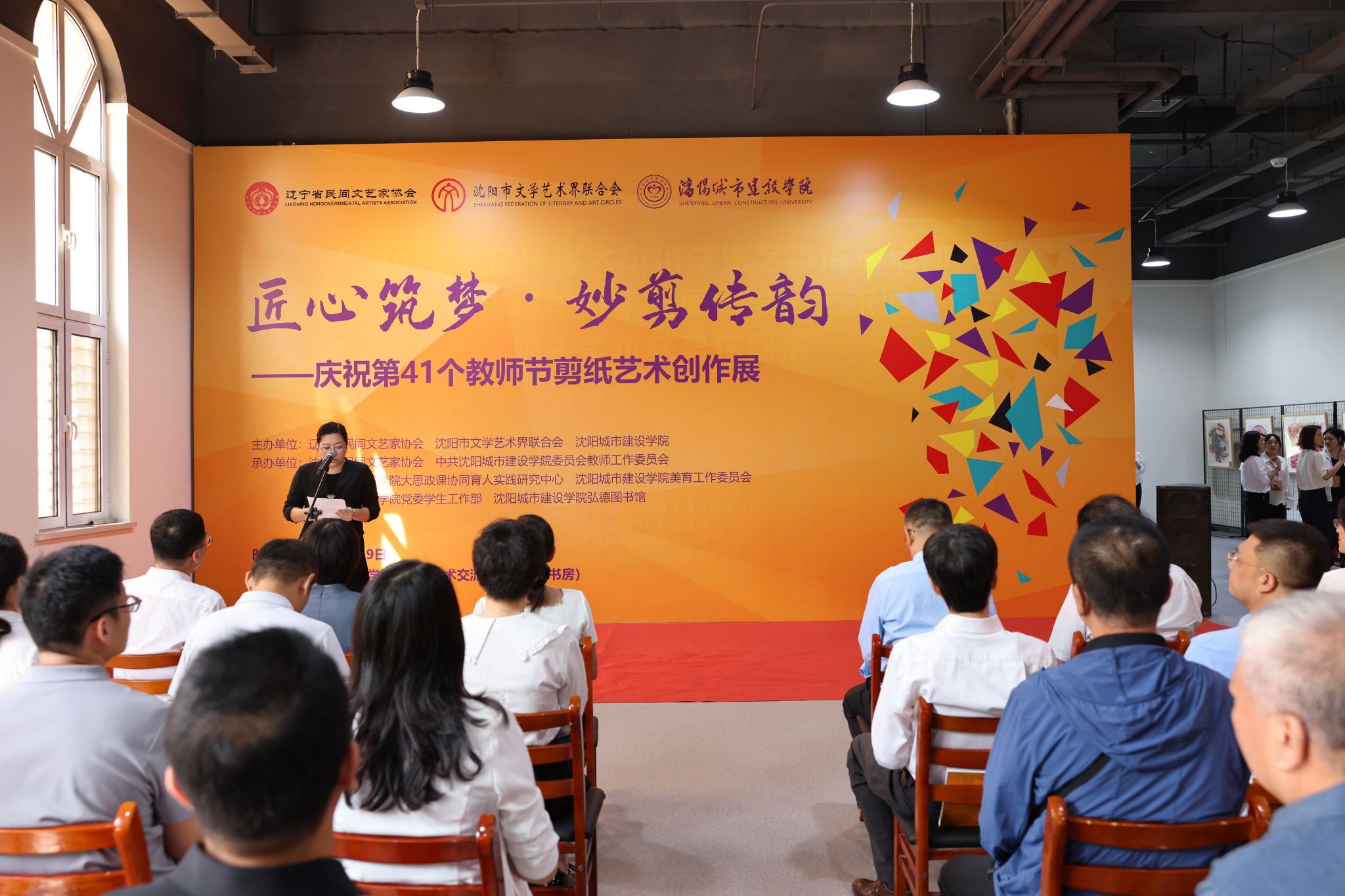9月9日,由辽宁省民间文艺家协会、沈阳市文学艺术界联合会和沈阳城市建设学院共同主办的“匠心筑梦·妙剪传韵——庆祝第41个教师节剪纸艺术创作展”在我校弘德书房开幕。
