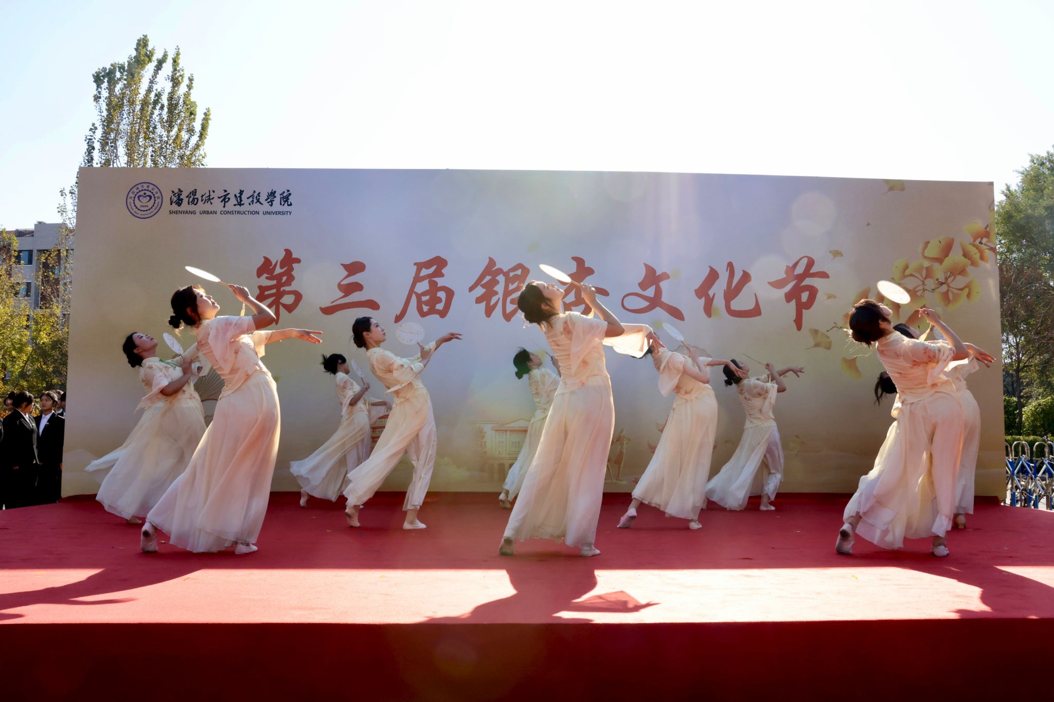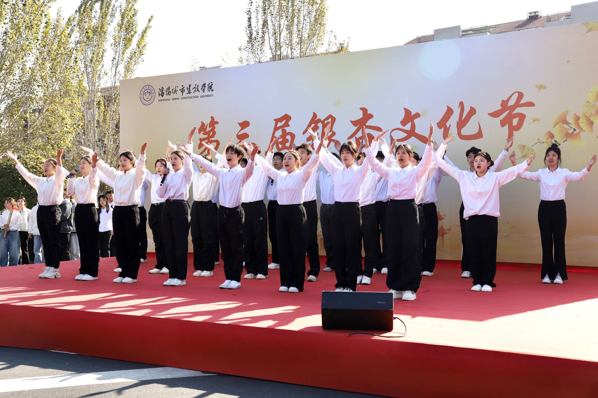开幕式上,还进行了展演。舞蹈《入画江南》让翩跹舞姿与飘落的银杏叶相映成趣,将秋日校园的诗意画卷徐徐展开;朗诵《银杏铸魂 青春礼赞》字字铿锵,诠释着学校“脚踏实地、自信自强”的银杏精神内涵;歌曲联唱《闪耀》与校歌《银杏树》引发全场共鸣,歌声中饱含着城建学子的青春热忱。
