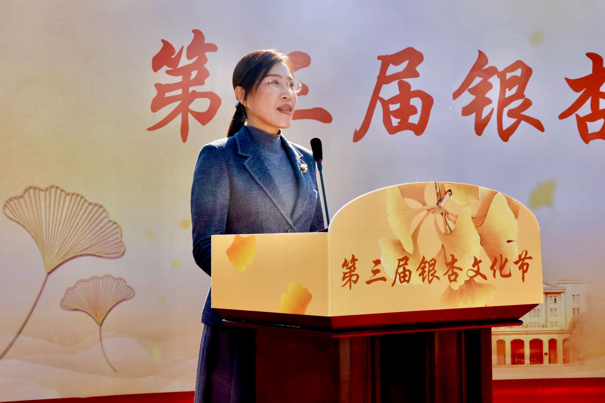 她表示,学校的1300余棵银杏树见证了学校的发展历程。学校持续打造以银杏文化为核心的思政品牌,不断涵养学生品格,为学校发展注入持久动力。为充分发挥学校的社会服务职能,让学校成为传播地域文化的重要窗口,沈阳城市建设学院坚持将银杏文化节向社会开放,倾听广大家长、合作企业、社会各界的建议,办一所学生向往、家长满意、社会赞誉的高品质学校。学校将持续深耕“银杏文化”,依托沈阳城市建设展示馆,探索打造“校园文化+城市文旅”新IP,构建“文化育人+社会服务”新体系,在服务社会、助力地方建设上迈出更坚实的步伐。