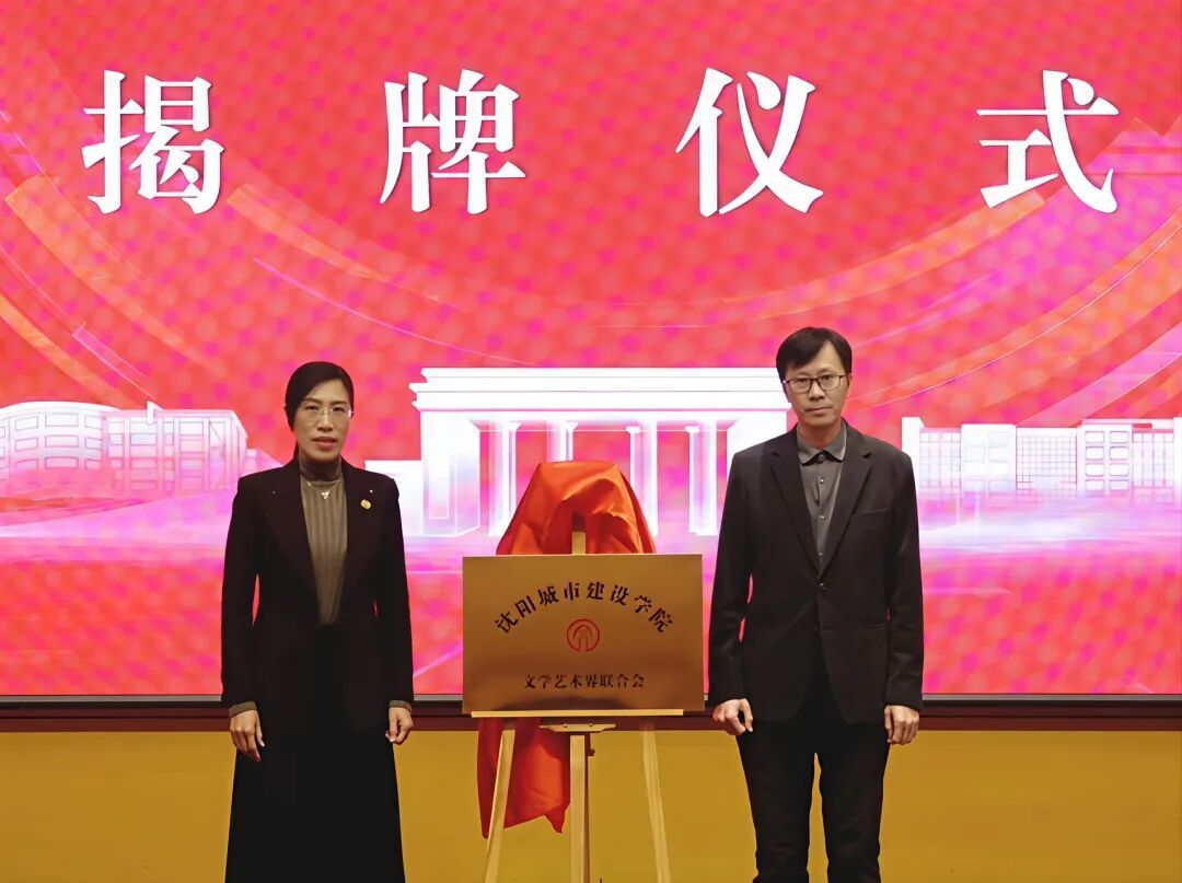会上,伯绍阳与张晓雁共同为“沈阳城市建设学院文学艺术界联合会”揭牌。