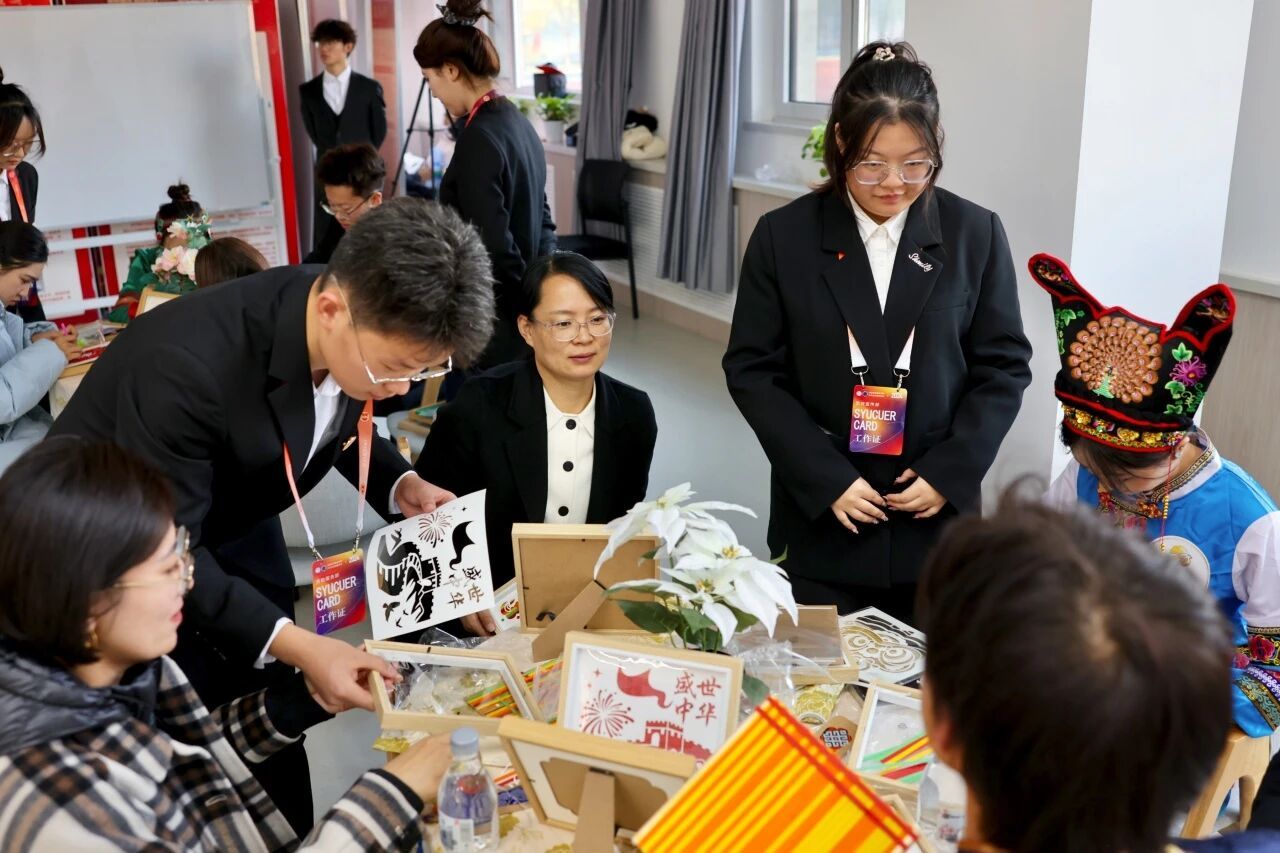 “这石榴籽和祥云凑在一起,就像咱们大家围坐在一起似的!”在“巧手结情谊”手工协作环节,领导与师生共同参与同心石榴灯等手工制作。师生们还在自制的书签上写下“愿我们像石榴籽一样紧紧相拥”等真挚寄语,互赠传递牵挂,让小小的祝福成为连接各民族情感的坚实纽带。
