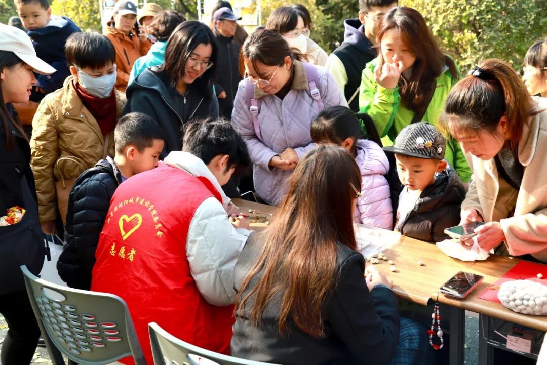 银杏市集人气高涨,手工银杏叶书签、创意画、银杏果多肉等摊位琳琅满目,现场炒制的银杏果香气四溢。市民王先生表示,带孩子亲手制作创意画,“把校园的秋天揣进了口袋”,收获满满。